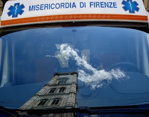 Il campanile di Giotto si specchia nell'ambulanza