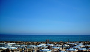 447° Cielo blu, mare blu, ombrelloni bianchi e blu...