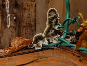 162° Rete avvolta da formazione di funghi.