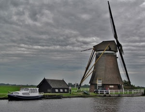 Un mulino, una casa, una barca, un'auto, un uomo