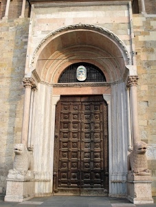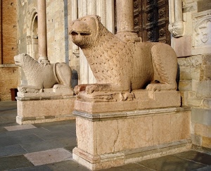 231° leoni stilofori, realizzati in marmo bianco e in marmo rosa da Giambono Bissone,