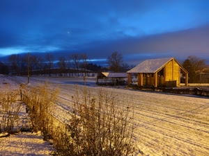 Notte di luna e neve in campagna