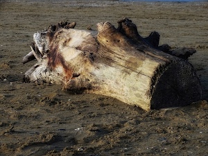grosso tronco sulla spiaggia