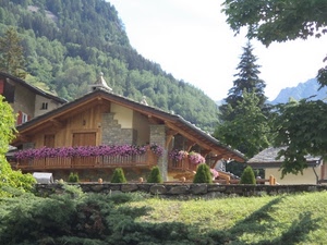 Con davanti un'aiuola di fiori rossi