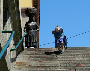 | 14/08/2019: da Diana Cocco quello ceh colpisce in quest'immagine (bravo) è la figura ritta della scultura in opposizione con la postura fortemente incurvata della donna dovuta alla vecchaia |