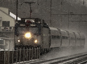 treno sotto la neve