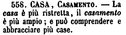 Casa, Casamento - La casa è più ristretta, il casamento è più ampio; e può comprendere e abbracciare più case. [immagine]