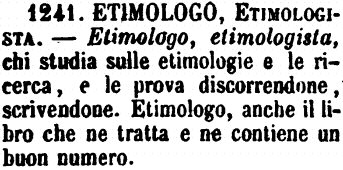 Etimologo, Etimologista - Etimologo, etimologista, chi studia sulle etimologie e le ricerca, e le prova discorrendone, scrivendone. Etimologo, anche il libro che ne tratta e ne contiene un buon numero. [immagine]