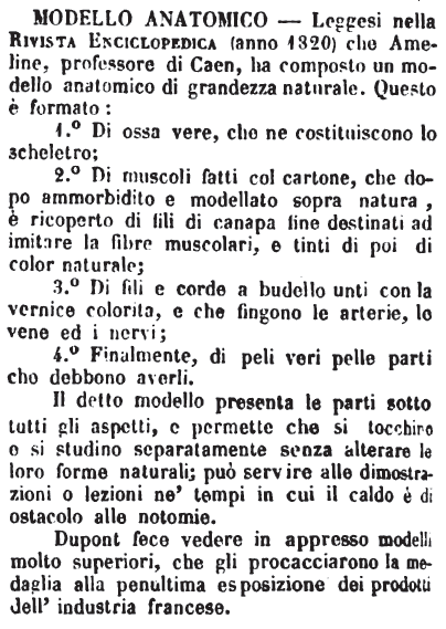 Modello anatomico - Leggesi nella Rivista Enciclopedica (anno 1320) che Ameline, professore di Caen, ha composto un modello anatomico di grandezza naturale. Questo è formato: