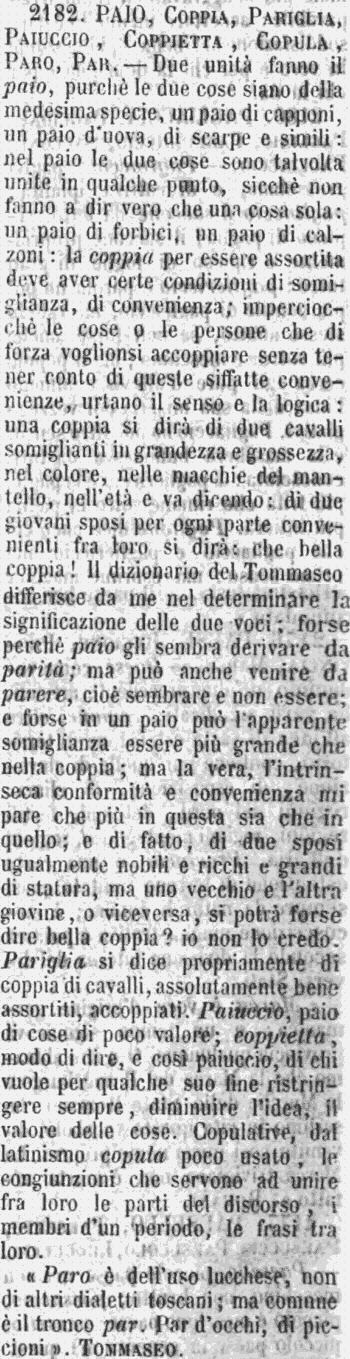 | Scartando le parti in comune (in coda oppure in capo), "paro" si può ottenere dalle seguenti coppie: pacca/rocca, pacchetti/rocchetti, pacchetto/rocchetto, pacchi/rocchi, pacco/rocco, pack/rock, padano/rodano, pagare/rogare, pagatore/rogatore, pagatori/rogatori, pagatoria/rogatoria, pagatorie/rogatorie, pagatrice/rogatrice, pagatrici/rogatrici, paghi/roghi, pago/rogo, palla/rolla, palle/rollè, palli/rolli, pallino/rollino, pallio/rollio... |