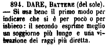 Dare, Battere (del sole) - Si usa bene il primo modo per indicare che si è per poco o per isbieco: il secondo esprime meglio un soggiorno più lungo e una vibrazione dei raggi più diretta. [immagine]