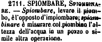 Spiombare, Spiombinare - Spiombare, levare il piombo, è l'opposto d'impiombare; spiombinare è misurare col piombino l'altezza dell'acqua in un pozzo o simile altra operazione. [immagine]